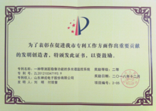 神戎公司的《一種帶測距穩(wěn)像功能的多光譜監(jiān)控系統》發(fā)明專利 榮獲濟南市專利“二等獎”