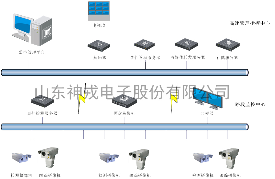 神戎公司基于自身的激光夜視儀、熱成像儀、事件檢測跟蹤技術開發出了高速交通視頻監控系統。該系統可迅速檢測出高速公路上的交通事故、車輛逆行、非法停車、交通堵塞、行人、火災、路面散落物等各種異常情況,立即觸發報警并自動將報警視頻圖像切換到指揮中心監控畫面,確保第一時間發現事件并準確定位,然后由指揮中心通知值守民警或救援車輛及時趕到現場進行處理。